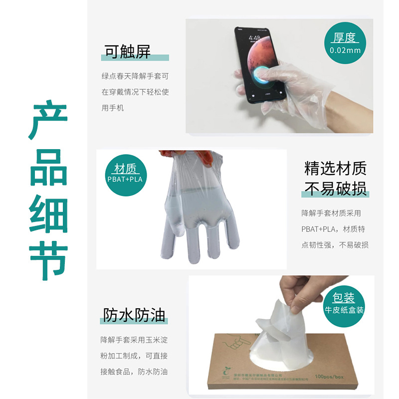 Premium Material for Durability: Made from PBAT+PLA, these degradable gloves offer high toughness and resistance to breakage.